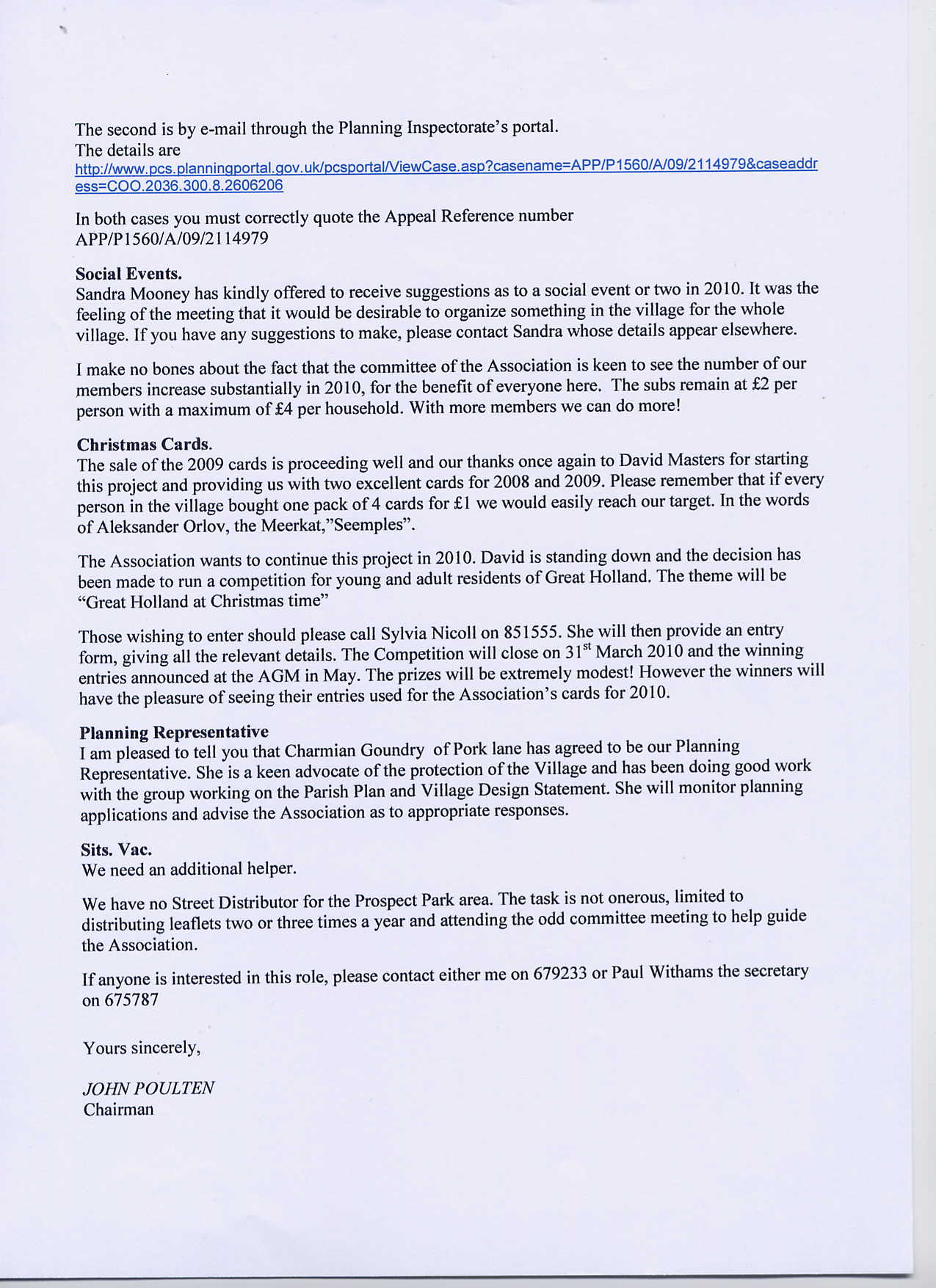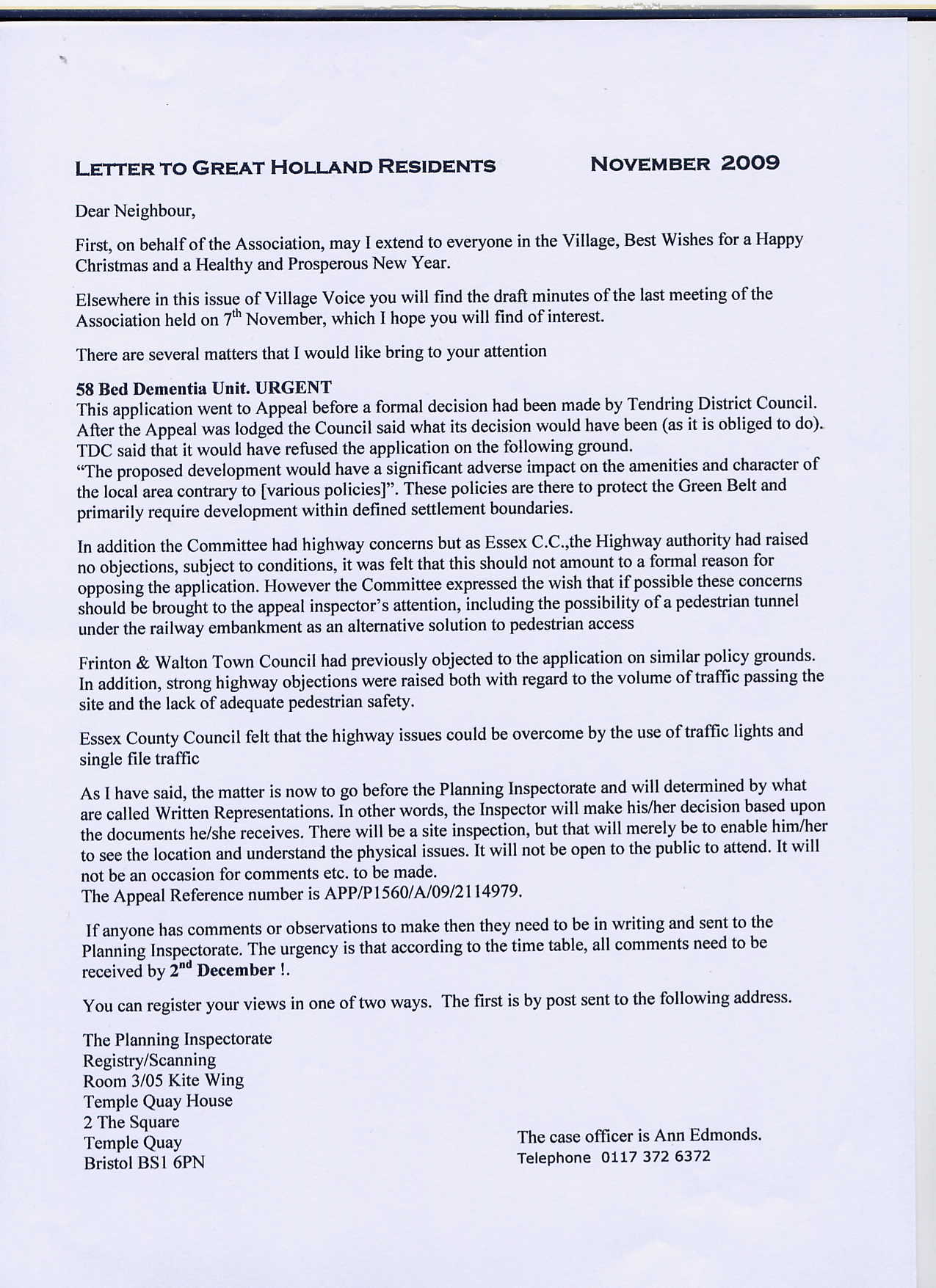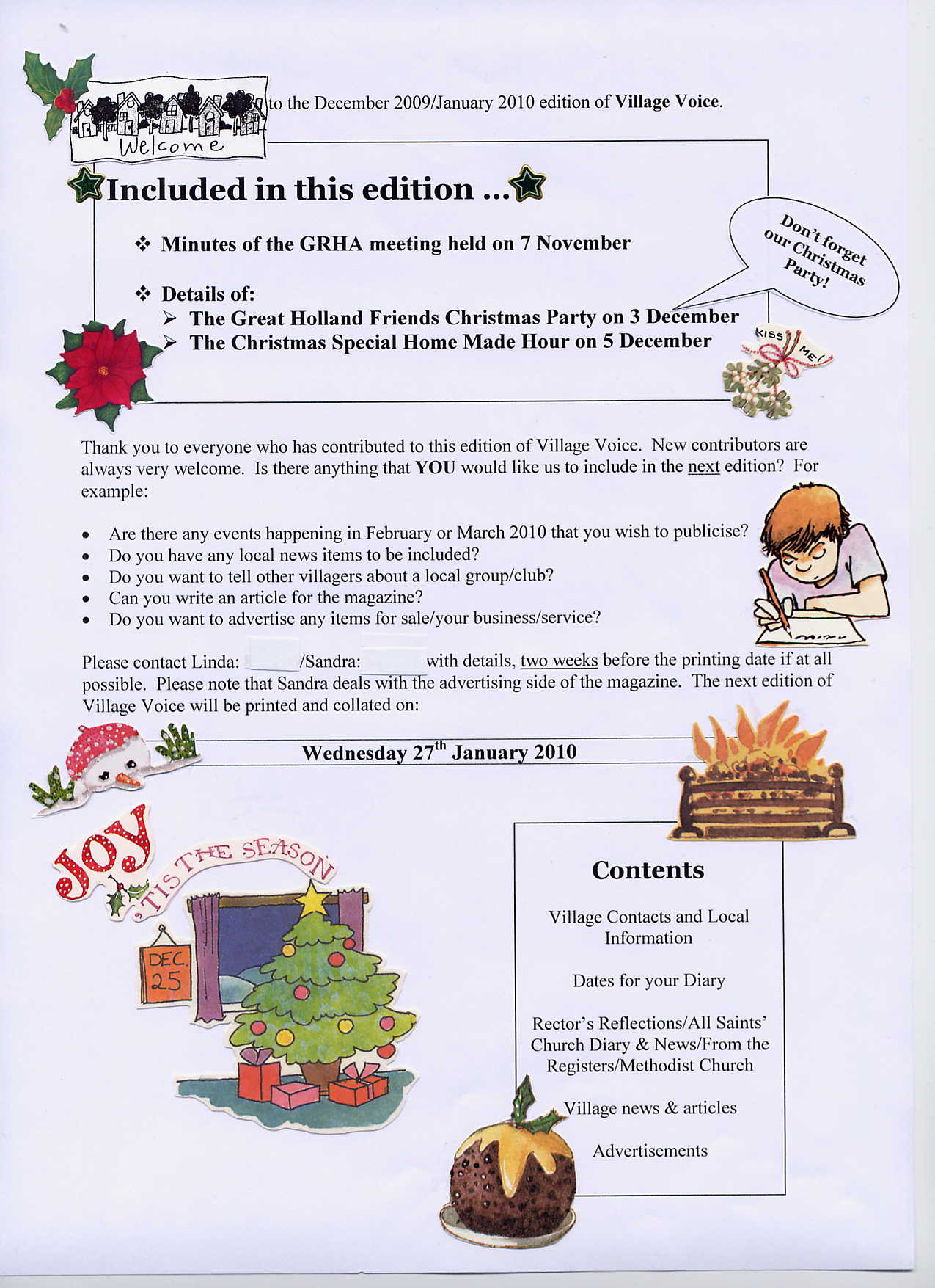 This Page offers a colour selection from the Dec 2009 & Jan 2010 edition of the bi-monthly village magazine "Village Voice".