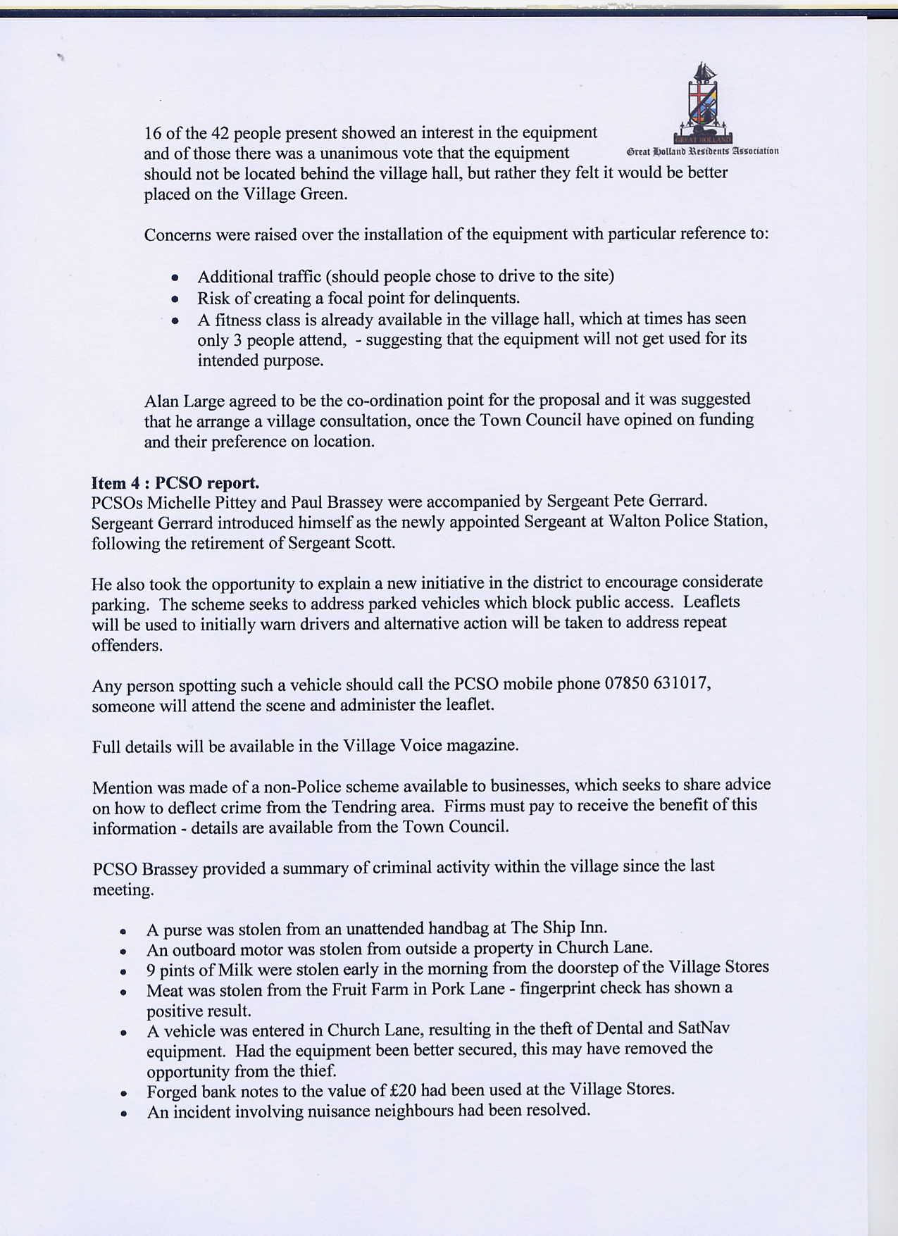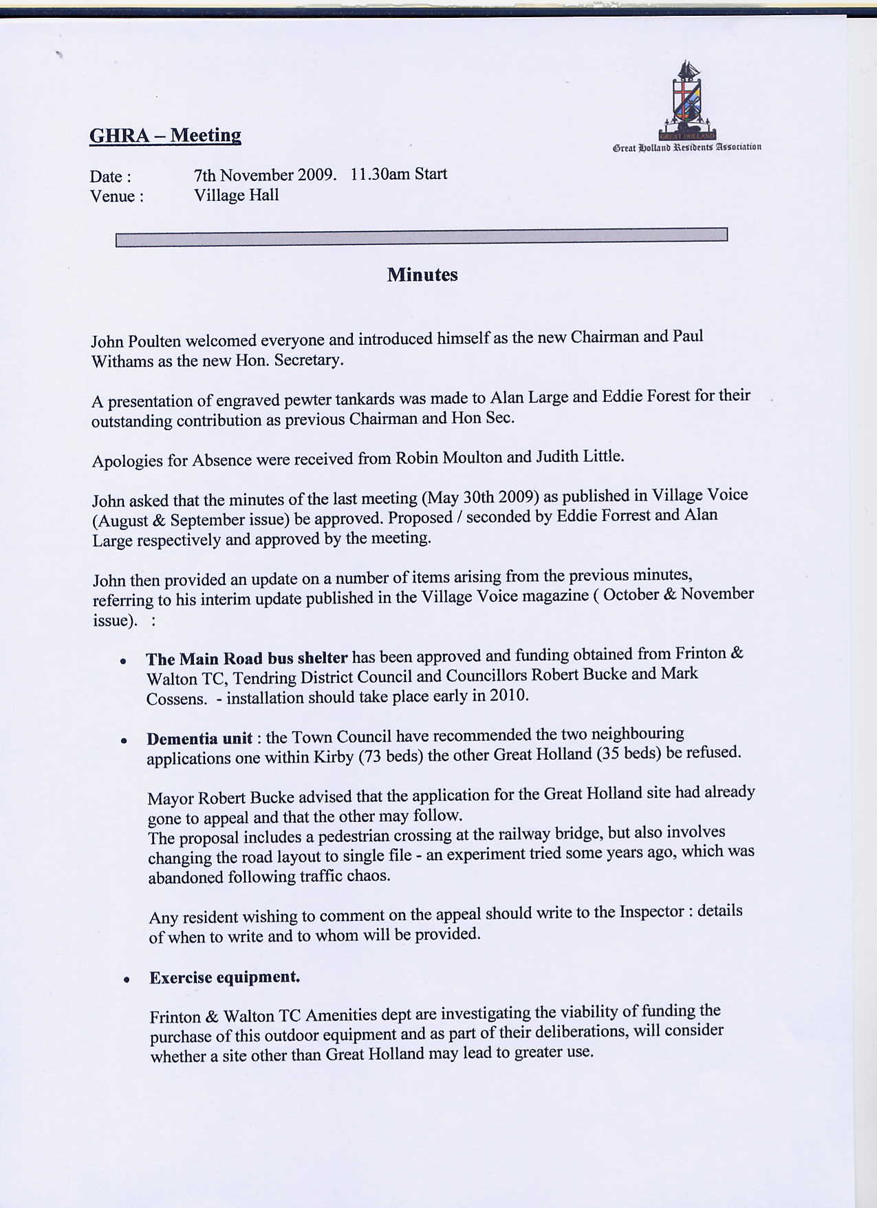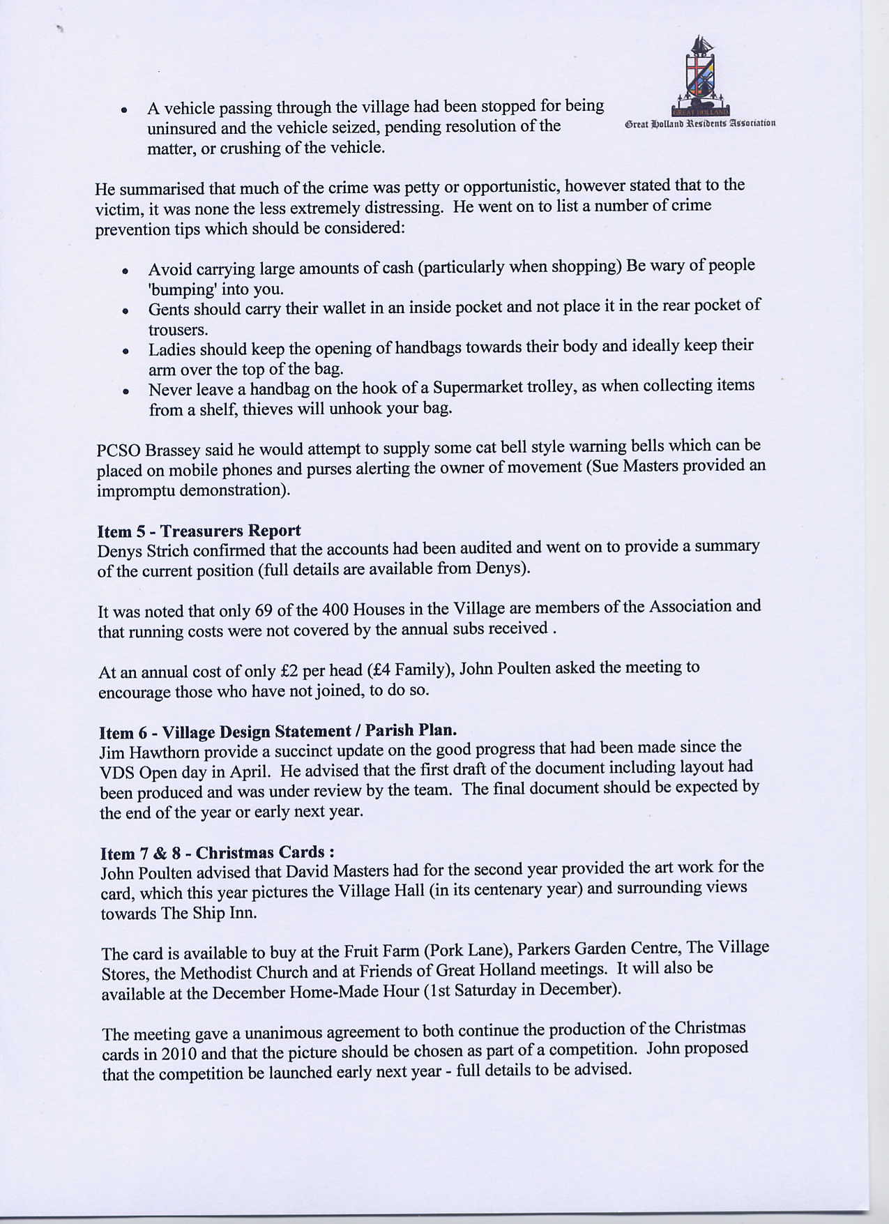 This Page offers a colour selection from the Dec 2009 & Jan 2010 edition of the bi-monthly village magazine "Village Voice".
