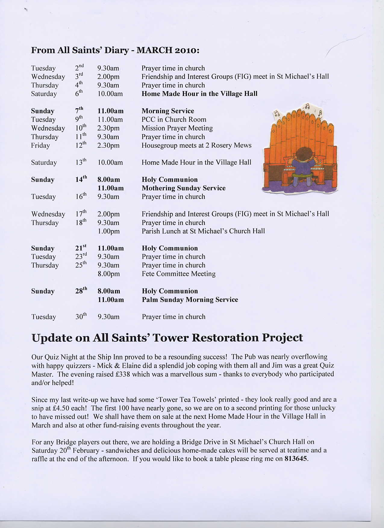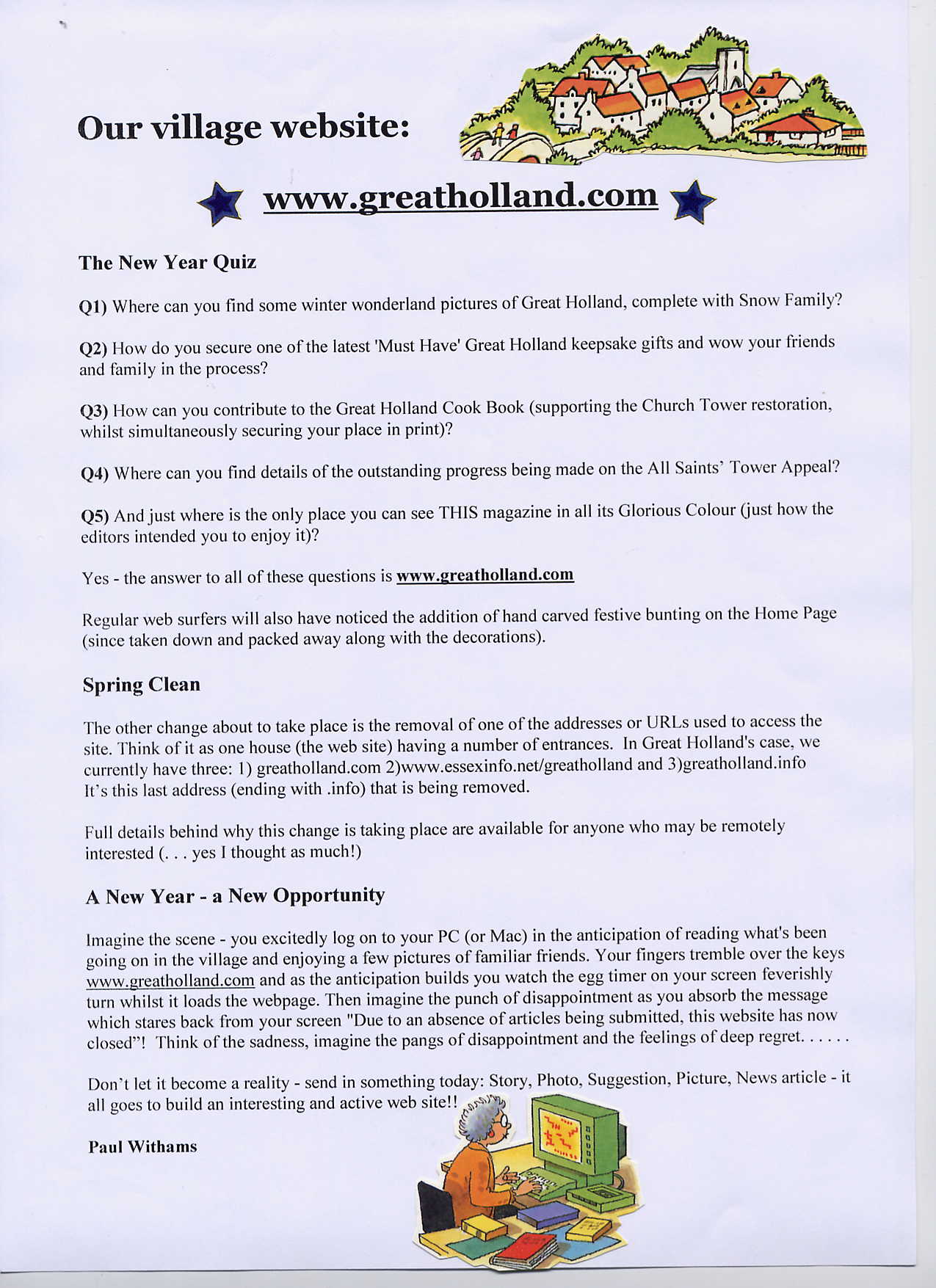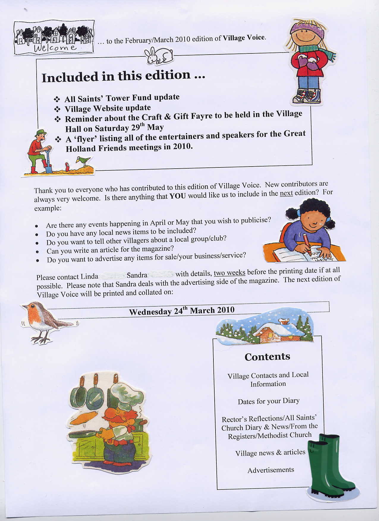 This Page offers a colour selection from the Feb & March 2010 Edition of the bi-monthly village magazine "Village Voice".