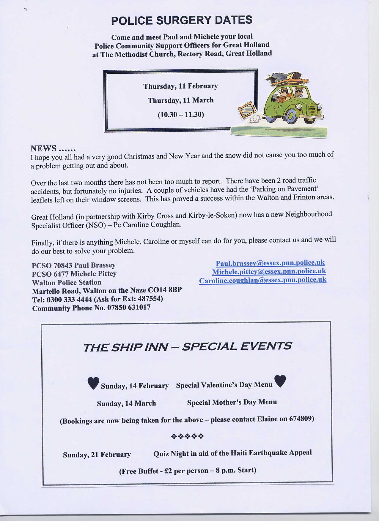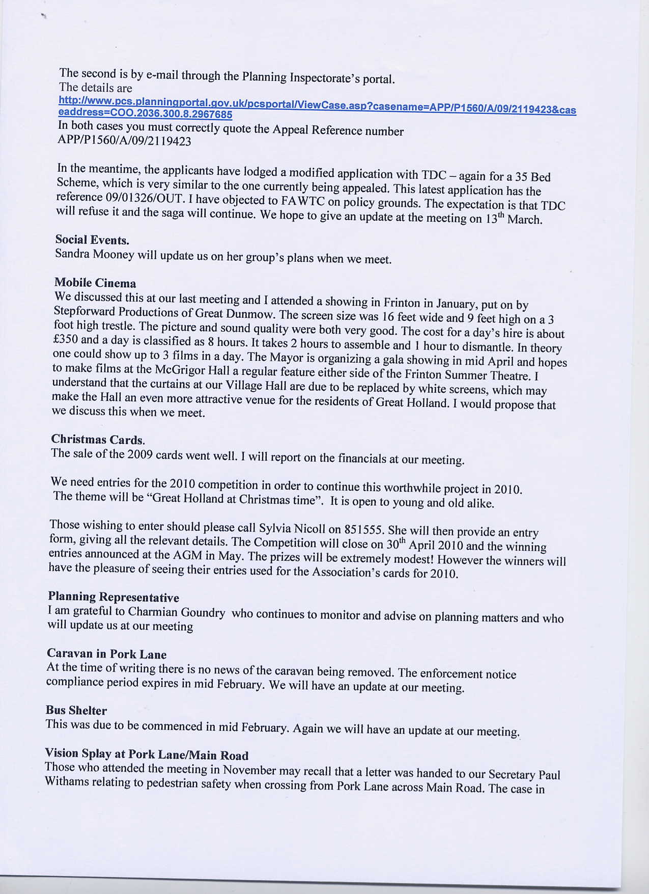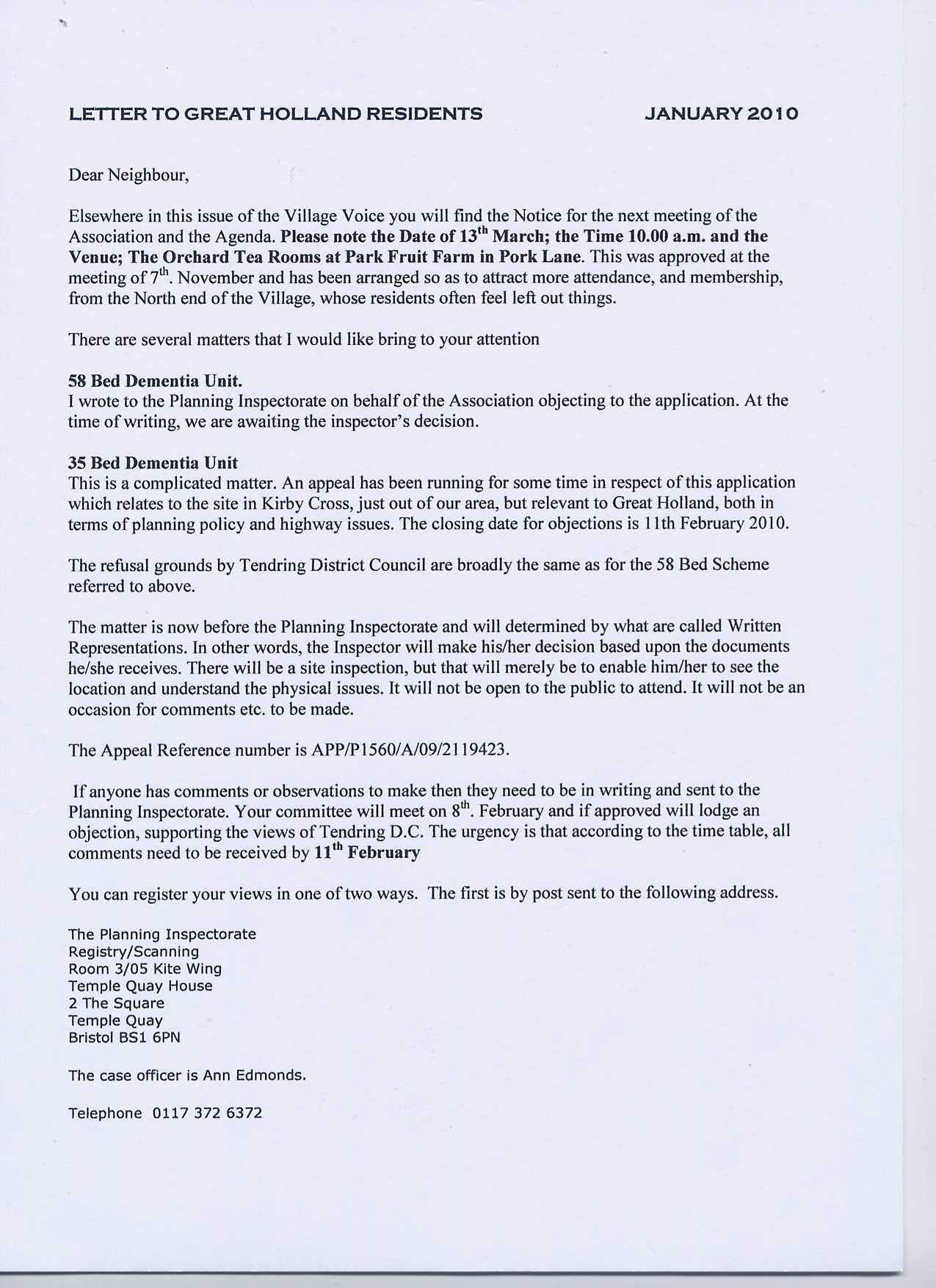 This Page offers a colour selection from the Feb & March 2010 Edition of the bi-monthly village magazine "Village Voice".